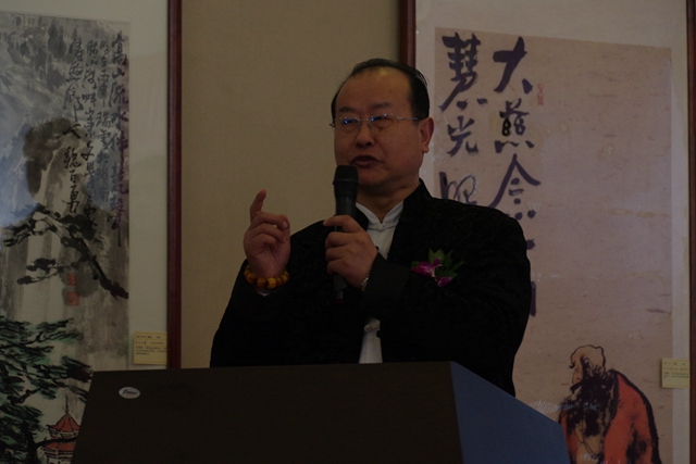 “昨天,春天的使者正轻叩博山正觉寺的山门;今天,山门打开,使者到来,这春意浓厚的展厅……”书画展开幕式由常务副院长任钦功先生主持,出席开幕式的嘉宾有:博山正觉寺书画院院长傅春林先生;淄博市民宗局于精忠老局长;博山区委常委、统战部王冲部长;博山区民宗局于忠才局长;博山区文化出版局刘莲静局长;博山区民宗局孙忠副局长。