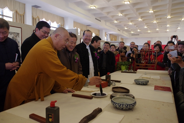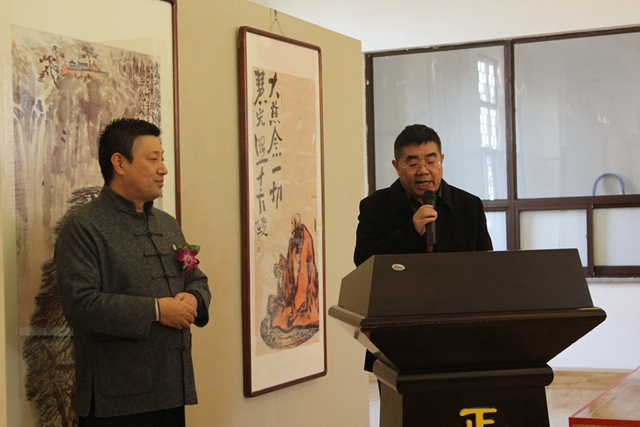 开幕式上,博山区民宗局于忠才局长,博山正觉寺书画院院长傅春林先生,正觉寺方丈仁炟大和尚分别致辞。