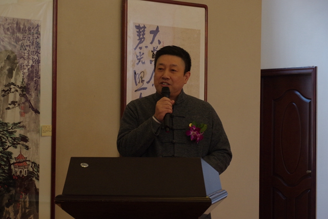 “博山正觉寺书画院自成立以来,已举办大大小小近十场书画展,到现在已积累有一千多位书画家的资源。我们一开始的定位就是从学术高度,将博山正觉寺书画院逐渐打造成全国专业的书画院。今天的展品完全是从学术的角度进行评选,而不是从数量上进行罗列。本次共展出八十多幅作品,其中国家会员有二十多位......这次活动可以说是‘小国展’水平。”任钦功副院长恳切地说。