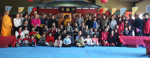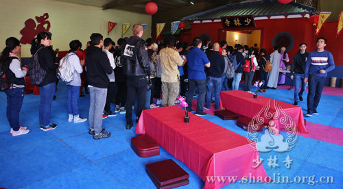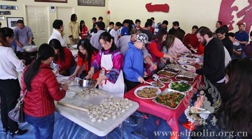 新春祈福法会结束后,美国洛杉矶少林文化中心为来宾准备了丰富的新年食品,师父调制了素菜馅,义工们帮助和面、擀饺子皮,小朋友们兴高采烈地包起了饺子。气氛热烈、欢乐、祥和。