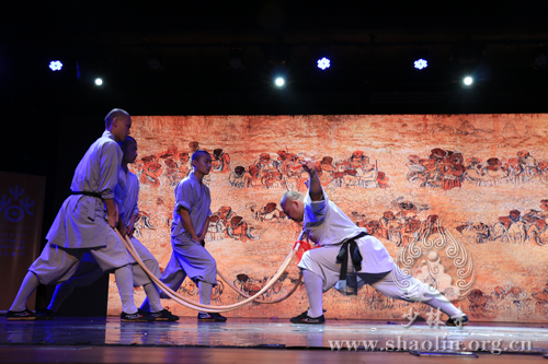 祈福法会结束后,泰方准备了精彩的泰国传统祝福舞蹈,以及泰拳表演。少林文化代表团也展演了少林八段锦、二指禅、象形功等传统少林功夫,并邀请现场嘉宾上台体验,将晚会气氛推向高潮。(责任编辑:禅悦)