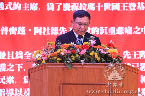 泰国政府现任副总理巴真张通在致辞中说:“一直以来,少林寺与泰国保持着友好的关系,去年十月,前国王普密蓬·阿杜德先王去世后,少林寺应泰国王室的请求,举办法会为普密蓬先王祈福。为了庆祝泰国国王拉玛十世的登基,泰方邀请少林文化代表团前来开展文化交流。希望今后少林寺与泰国继续保持亲密友谊,也希望泰国人民的热情好客能够迎接更多中国游客的到来。”