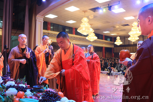 晚上七点,在少林文化代表团的带领下,与会嘉宾双手合十,虔诚祈福,祈愿中泰两国友谊长存,国泰民安,祈愿社会和谐,风调雨顺。