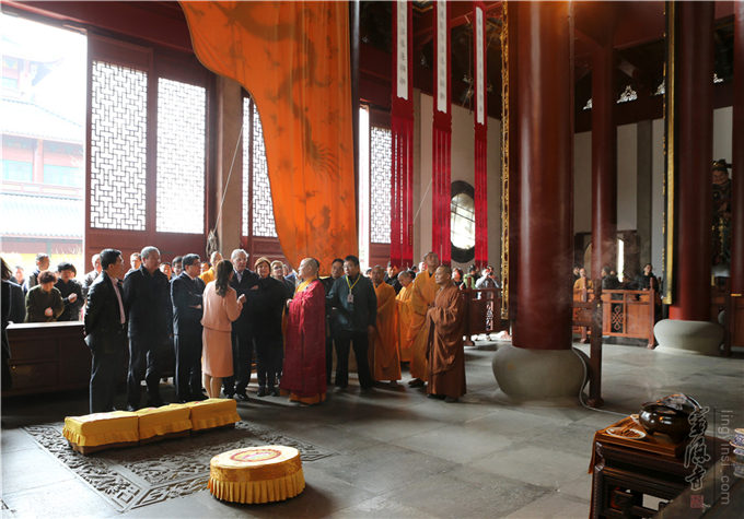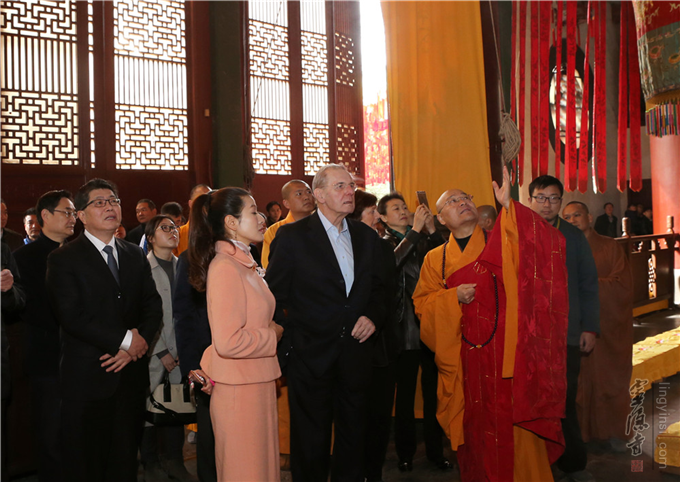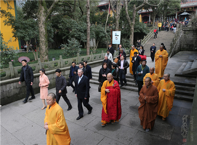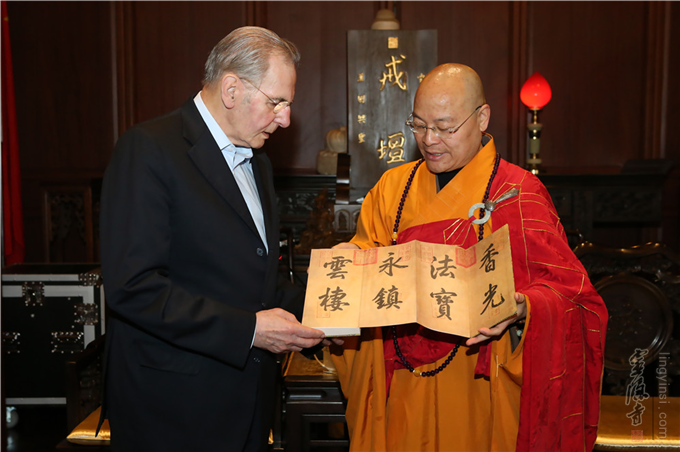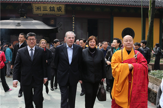 2017年3月25日,前国际奥委会主席雅克·罗格携妻子到访灵隐寺。光泉法师领众常住热烈欢迎并接待了一行人。