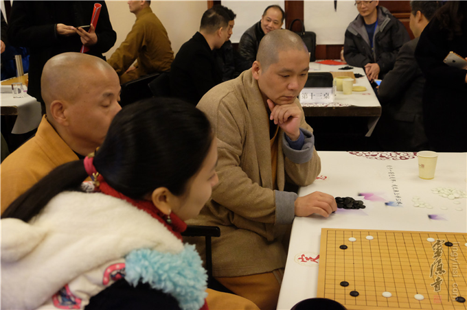 灵隐寺监院廓忍法师致辞说:云林棋院多年来,一直致力于佛教文化与围棋文化交流。灵隐寺也多次承办相关赛事,以其为对外文化交流多元化的元素构成。此次比赛,以围棋为纽带,交流文化、切磋技艺,因缘殊胜。希望以此为契机,于博弈处常生关照,于取舍间觉知本心。