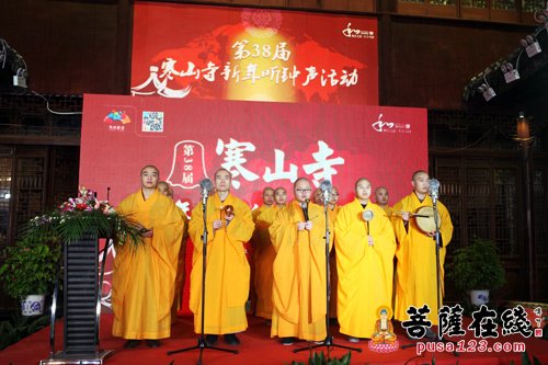 23时42分08秒,秋爽大和尚敲响寒山古钟,雄浑的108钟声回荡寒山内外,回荡海内外的来宾心中,声声祈愿:人心和善、家庭和睦、人际和顺、社会和谐;声声祈愿:国家富强,人民安康;以和合之道,筑就天下大同的中国梦!