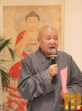 秋爽大和尚代表寒山寺两序大众、和合文化基金会对莅临此次活动的各位领导的到来表示热烈的欢迎和诚挚的敬意,向关心基金会发展的各级领导及嘉宾表示由衷的感谢,向到临的各位老人表示真诚的祝福,祝愿老人们身心健康、万事如意。秋爽大和尚说:“古语云,老吾老以及人之老,幼吾幼以及人之幼”。寒山寺与和合文化基金会,秉承敬老爱老的中华传统美德,持守佛陀“出家在家,慈心孝顺,供养父母”的教导,连续举办喜迎新年,百位老人相聚寒山,共度新春活动,让老人身心愉悦,感受佛陀的慈悲之光。自基金会成立以来,积极关注社会养老事业,兴办和合安养院等各种关爱老人公益活动。值此喜迎新年之际,再次举办百位老人迎新活动,希望能给老人们带来温馨美满的新年,祝愿每一位老人吉祥如意、福慧双增,身体安康,无量光,无量寿!”