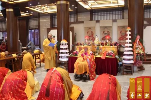 秋爽大和尚、普俊大和尚、秋林大和尚、心海法师、果量法师于佛前举行上堂大斋法会。上佛供毕,性空长老来到法会现场,现场所有法师、善信向长老行礼祝寿,长老虽年过九旬,但仍然精神矍铄,满脸笑容。