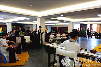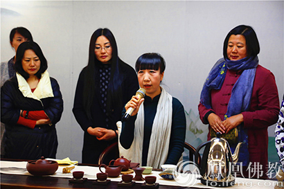 唐山龙泉寺公益课堂的茶艺老师们为参加佛学讲堂的学员们精心准备了茶艺表演(图片来源:凤凰佛教 摄影:陈思超)