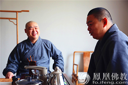 唐山龙泉寺当家明拂法师与中国佛学院定禅法师亲切交流(图片来源:凤凰佛教 摄影:陈思超)