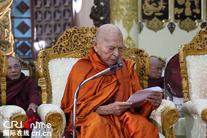 中缅高僧共同为两国人民的幸福和平诵经(图片来源:国际在线 摄影:洪荃诠)