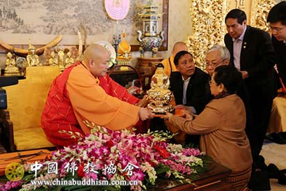 缅甸总统吴廷觉参拜北京灵光寺佛牙舍利