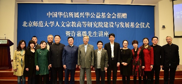 中国华信所属兴华公益基金会捐赠北京师范大学人文宗教高等研究院建设与发展基金仪式暨许嘉璐先生讲座日前在北师大举行。兴华公益基金会捐赠500万元人民币,将用于支持保障和促进北师大人文宗教高等研究院举办高规格学术活动,加强对外交流与合作,提升科研能力,扩大社会影响力等。