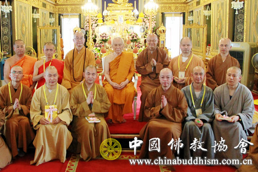 中国佛教代表团与泰国僧王颂德帕摩诃穆尼翁合影留念