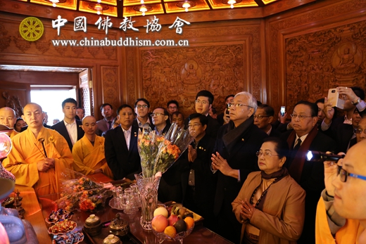 2017年4月9日上午,缅甸总统吴廷觉一行赴中国佛教协会直属寺院——北京灵光寺,瞻礼佛牙舍利