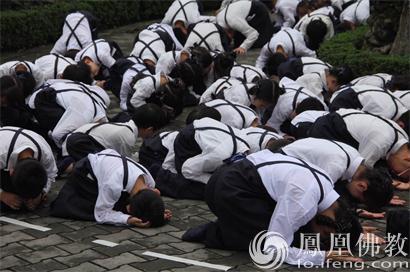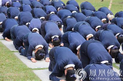 朝山队伍,从静思精舍山门、菩提大道、静思菜园依不同动线三步一跪,起点不同,方向都是静思精舍大殿,跟着静思精舍常住师父,一步一步走向正确的人生道路,每一个跪拜都为学习佛陀的清净心,如绕佛般接近佛的光明境界。