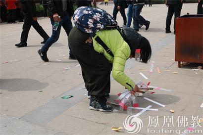 一位居士在活动现场捡垃圾,庄严道场。(摄影:慧德)