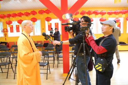 4月21日下午,加拿大佛教会湛山精舍召开新闻发布会,达义大和尚向新闻界通报了第九届千人素宴贺佛诞和首届“中加美三国佛教论坛”的筹备情况。多家多伦多华文媒体参加了发布会,并就一些问题采访了达义大和尚和房子清秘书长及其他工作人员。著名小提琴家Angela Wang和著名导演张炜等参加了发布会。