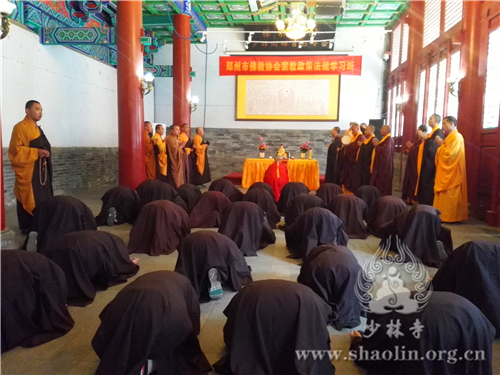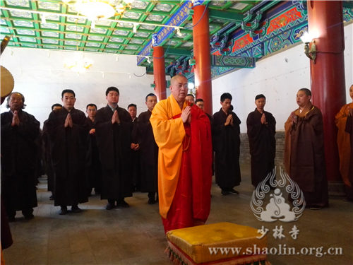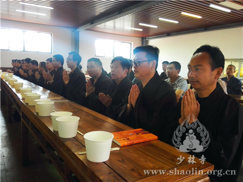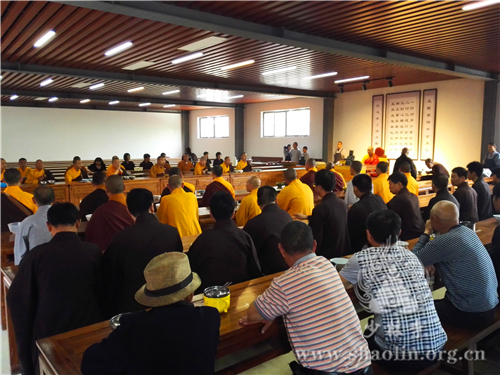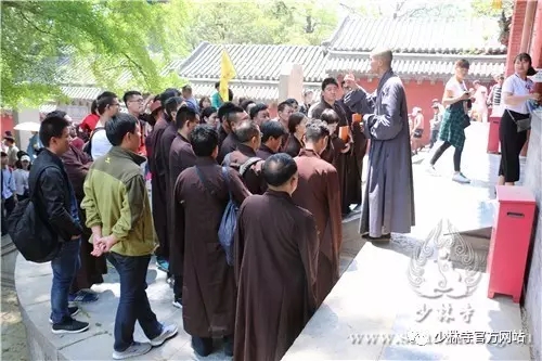 2017年5月1日,丁酉年农历四月初六,少林寺隆重举行传授三皈依法会。少林都市禅堂总部组织的来自全国各地的信众30余人一起皈依三宝。受十方信众的祈请,嵩山少林寺永信方丈为大众授三皈依。