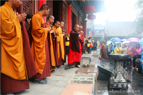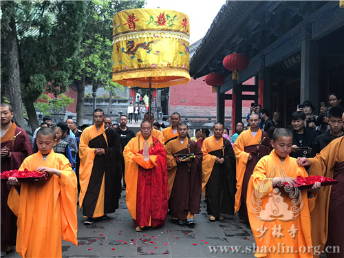 2017年5月3日,农历丁酉年四月初八,释迦牟尼佛圣诞日。禅宗祖庭嵩山少林寺隆重举行一年一度的“浴佛节祈福大法会”,纪念佛祖诞辰2641周年,并以此法会功德祈愿世界和平、风调雨顺、国泰民安、正法久住。浴佛节大法会由少林寺方丈释永信法师主法,少林寺常住院僧众及十方善信等数千人随喜参加,同沾法喜,共沐佛恩。