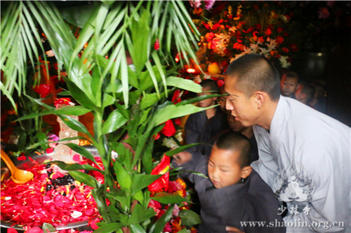 少林寺法师帮助小朋友浴佛