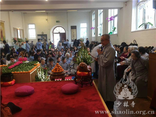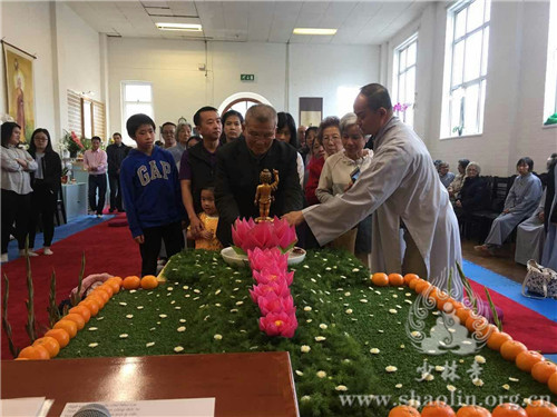 当地时间2017年5月7日,为庆祝释迦牟尼佛诞辰2641年,英国少林修文化中心隆重举行浴佛法会,祈愿世界和平,国泰民安,身心康泰。