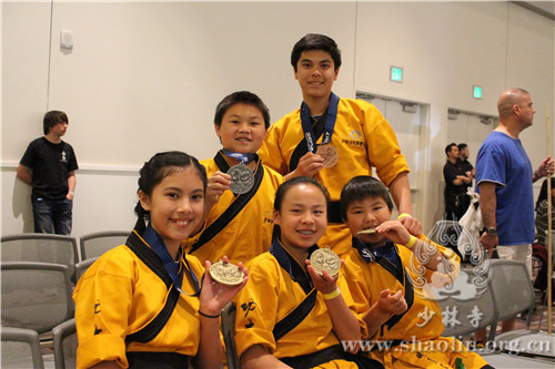 为积极备战比赛,美国洛杉矶少林功夫禅学院特别选拔在学院修习多年、功夫精湛的学员参赛,各年龄组学员们在传统拳和传统兵器比赛中奋勇拼搏,获得优异成绩,荣获68枚奖牌,并获得少年男子和女子总冠军的奖杯!