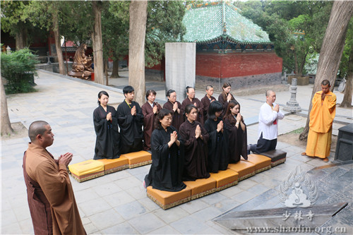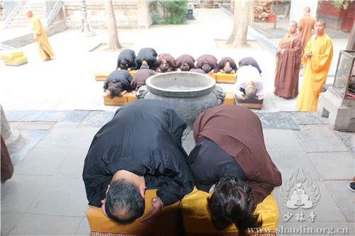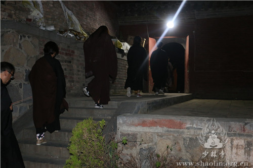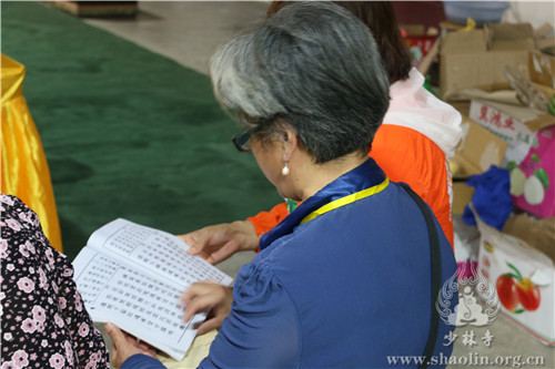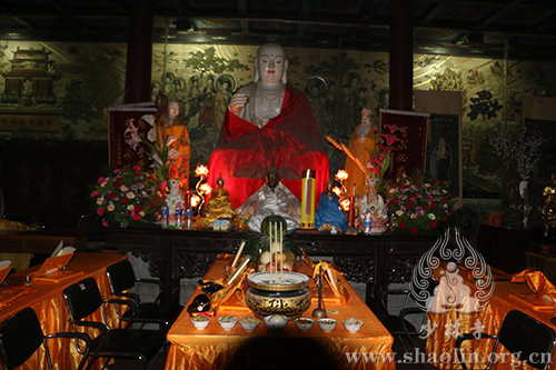 晚上六点十五分,众人云集少林寺练功房,五大士瑜伽焰口法会在法师们的唱诵下如法进行。延允法师、祥丰法师、万畅法师、本君法师、菩来法师一起在瑜伽坛前诵《香赞》并引领斋主上香,四众弟子齐诵《心经》、《往生咒》、《变食真言》等,依僧俗次序礼拜后,众僧及斋主依次前往面燃大士坛等各坛上香礼拜。