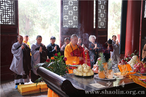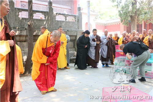 2017年5月31日,农历五月初六,丁酉年少林寺水陆大法会进入第四天。内坛举行请上堂、供上堂仪式,外坛各坛口诵经、拜忏、念佛等法事活动依旧。当天上午,水陆法会之放生法会在少林寺常住院举行。